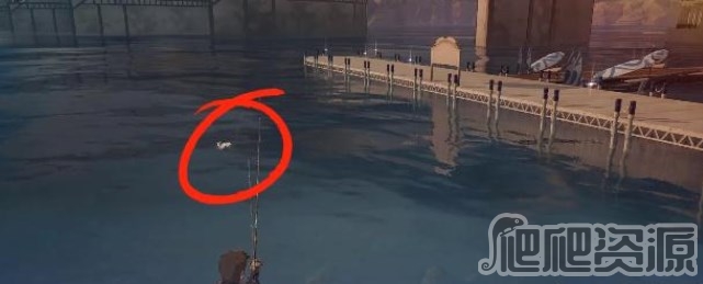 1、首先来到下图的湖边就钓鱼的地点,大家需要注意蓝协的钓鱼是顺着鱼方向扯线的;