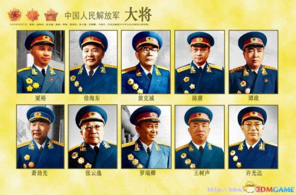 十大将:粟裕、黄克诚、谭政、肖劲光、王树声、陈赓、罗瑞卿、许光达、徐海东、张云逸