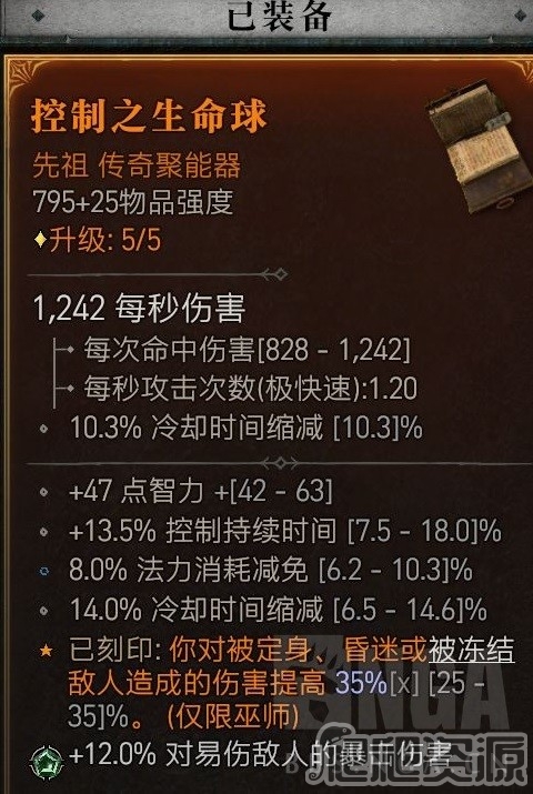 除了项链给电球提供攻速外,威能方面主要是控制增伤为主