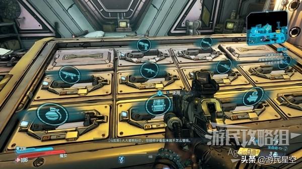 与马库斯对话,这里除了有贩卖机,还有“储物格升级台”,钱攒够了就可以在这里升级背包容量、弹药携带量等。