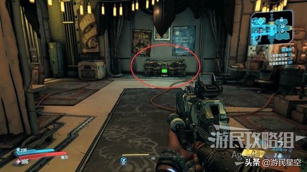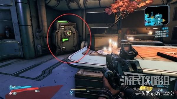 附近有个黄金宝箱,需要获得了黄金钥匙才能打开。直接获得金钥匙的途径请看:《无主之地3》金钥匙代码及使用方法,建议留几把到高等级的时候再开,因为开箱时获得的装备是根据你的等级刷的,前期全用完就亏了。