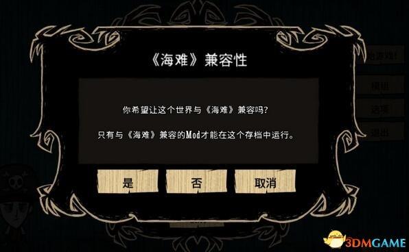 海滩兼容性如同名字一样,你点击是的话玩巨人版本的话就可以在后期做出神舟飞船飞到海滩版本,同时也可以带着你身上的东西过去,所以这里建议大家先玩玩巨人,把一些材料给备齐了再去生存海滩会简单一些。(海象牙,海象帽,齿轮,金块,宝石,图勒一套等魔杖)