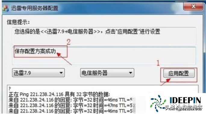 第二种:可以ping通的则如下图点击“应用配置”,这里会自动写入hosts,提示应用配置成功后,则重新启动迅雷,看下是否能登录。