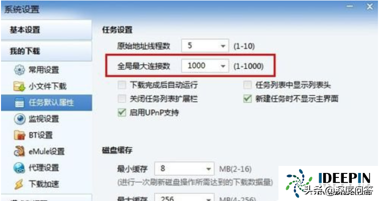 ③调节全局连接数为100,然后重新启动登录迅雷看下。