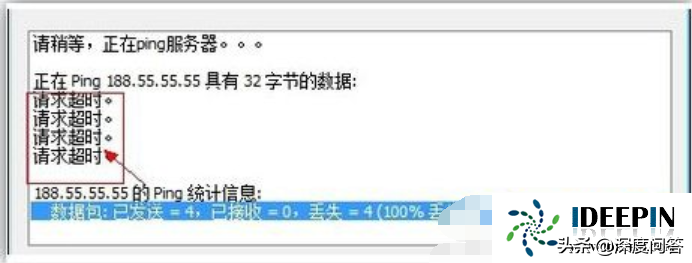 如果四个服务器运营商、电信、联通、深圳服务器都如下图出现“请求超时”的提示,则是网络问题